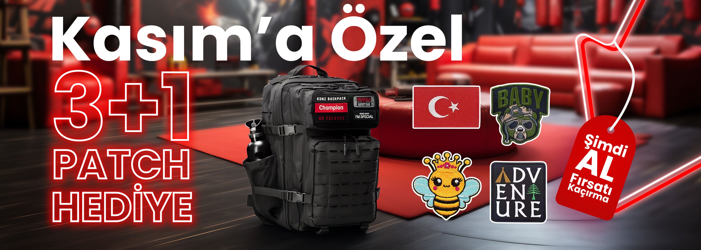 Kdnz Evo 2.0 Large 45L Red Black Sırt Çantası 3 Adet Patch Hediyeli